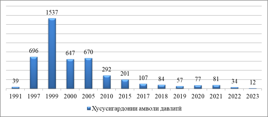 Хусусигардонии амволи давлатӣ давоми солҳои 1991-2023 [2,382;3,234]